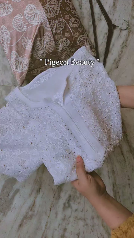 White Premium Georgette Chikankari Luxurious Set With Kamdani Add on