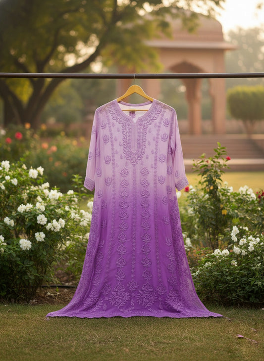 Mauve Premium Georgette Kurta Chikankari embroidery