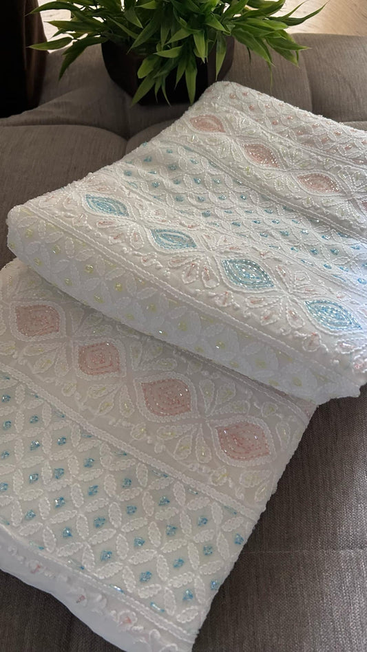 Beautiful shades of Noori Premium Georgette Chikankari Kurta Cutdana Embroidery