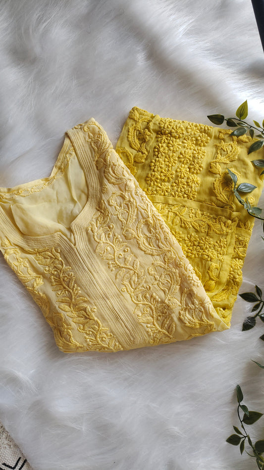 RAFIYA Double shade Premium Georgette Puffed Chikankari Long Kurta Pure Handcrafted