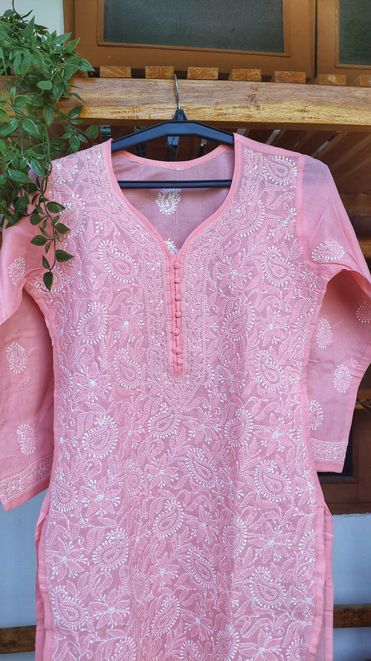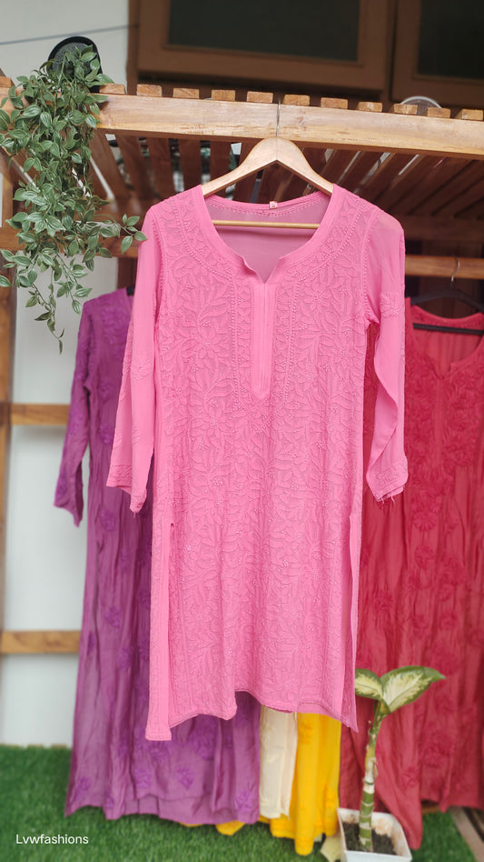 Noor Pinkish Premium Georgette Short Chikankari Kurti