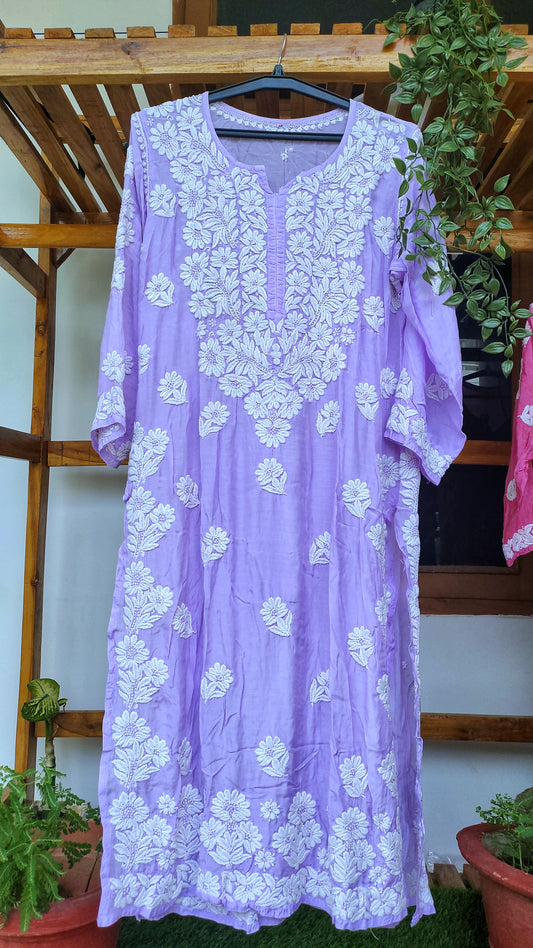 Farah Purple Premium Silk Luxurious Look Chikankari Long Kurta (Unique Back Embroidery)