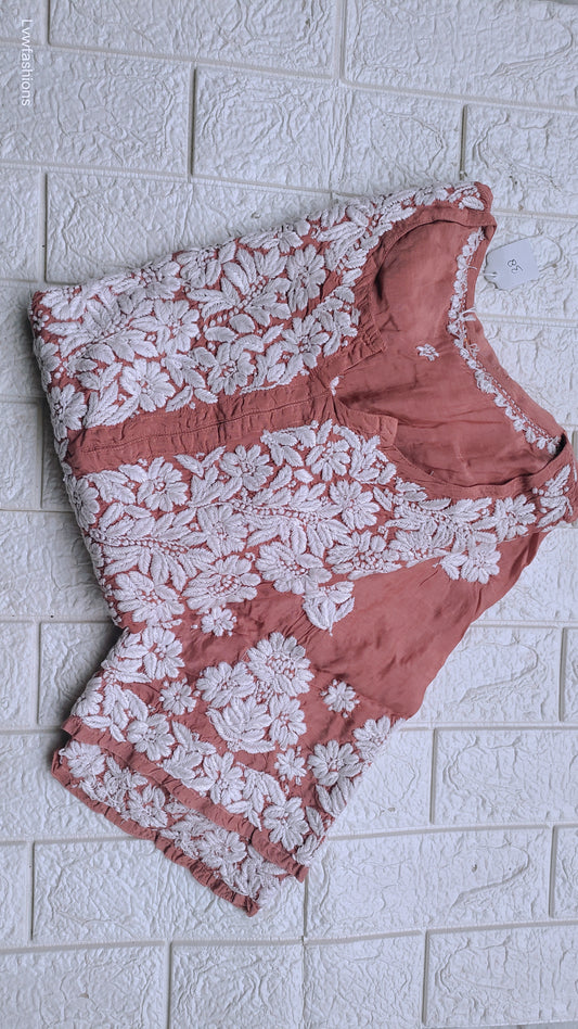 Farah Pinkish Premium Silk Luxurious Chikankari Kurta (Unique Back Embroidery)