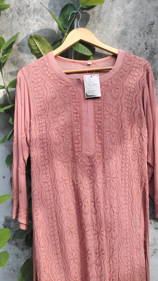 Rosy Brown Premium Georgette Long Chikankari Kurta