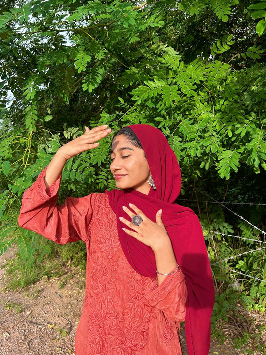 Shine Maroon Premium Silk Deep Red Chikankari Luxurious Long Kurti For women