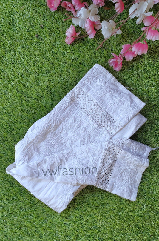Stretchable Cotton Chikankari pant With Lace (Free size)