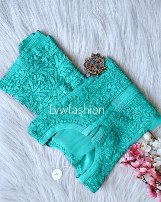 Pure Chikankari work What's in the Box: kurta Slik Inner Premium Crepe Silk Length: 46"...