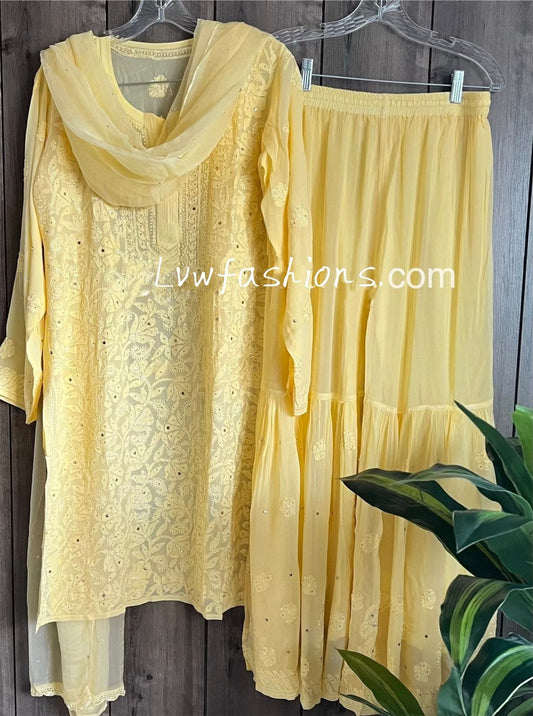 𝑰𝑵𝑨𝒀𝑨𝑻 Premium Georgette Gharara Chikankari Kurta Set