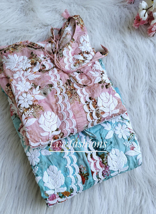 Beautiful Floral Printed Chikankari Gown Pure cotton