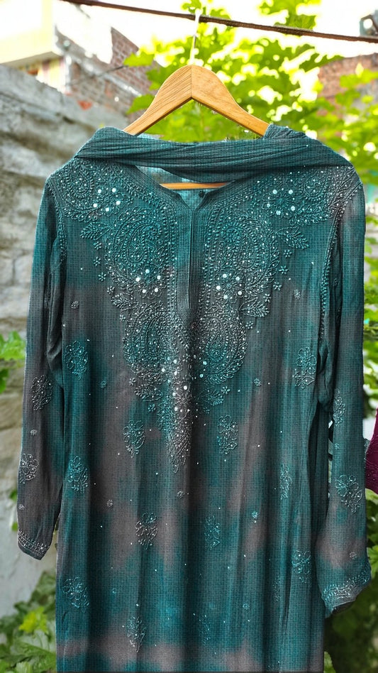 Pure Chikankari work What's in the Box: kurta Silk inner Premium Georgette Length: 46" inches...