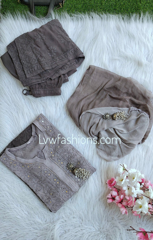 Beautiful Gray Premium Georgette 3 Piece Sharara Set