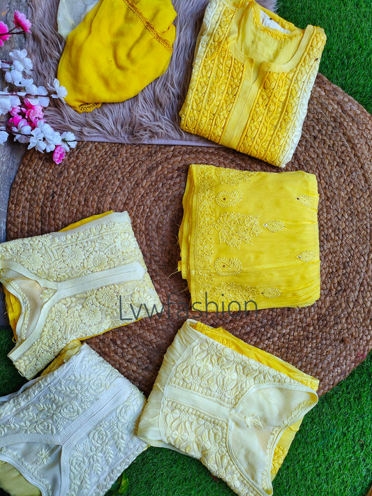 Pure Chikankari work What's in the Box: kurta Dupatta Bottom Silk inner Premium Georgette Length:...