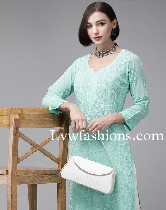 Beautiful Premium Georgette Long Kurta With Slip Chikankari & Kamdani Embroidery