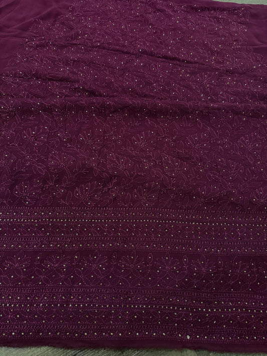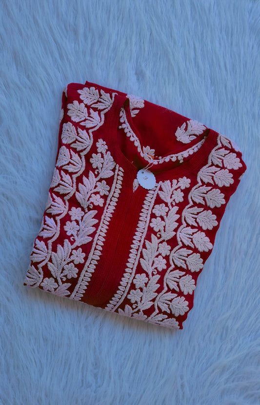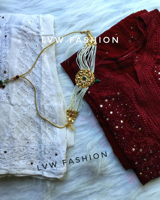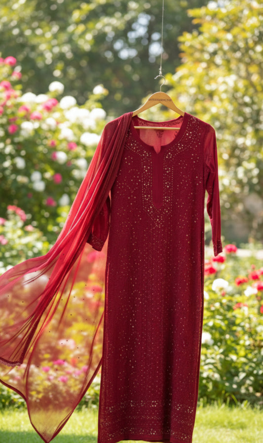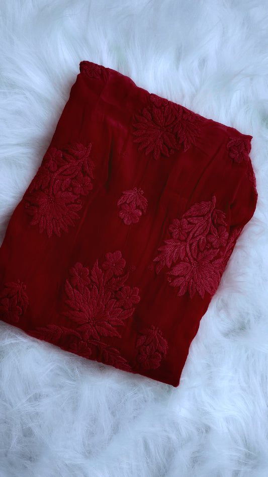 Blood Red Premium Georgette Chikankari Luxurious Set With Kamdani Add on