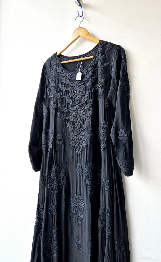 Blackish Premium Silk Luxury Anarkali Chikankari Dress