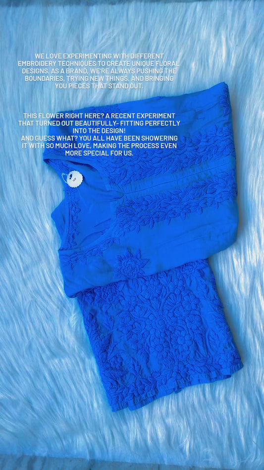 Blue marigold Premium Soft Silk Chikankari Luxurious Long Kurta