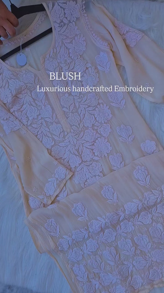 Blush Premium Georgette Chikankari Luxurious Look And Shade Pure Handcrafted