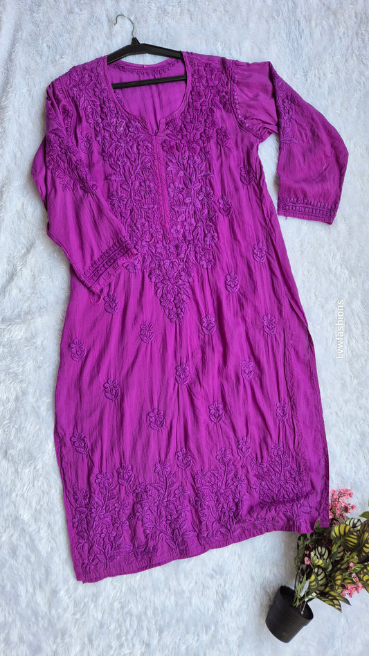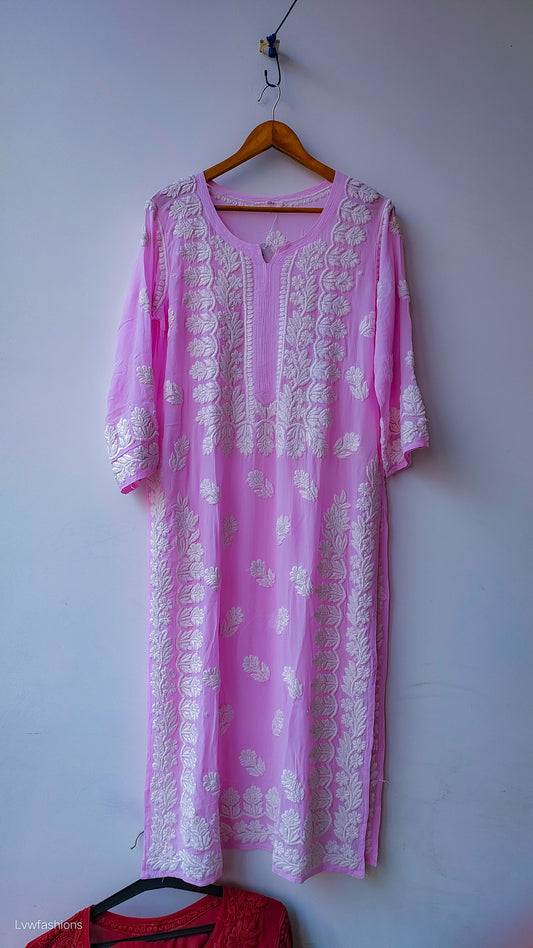 Cadmium violet Premium Georgette Luxury Chikankari Long Kurta