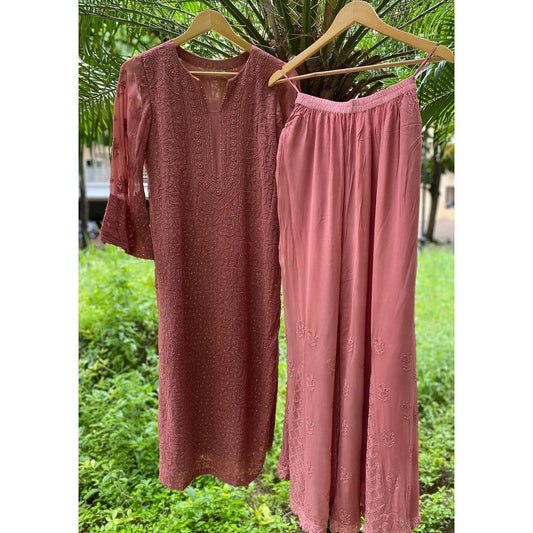 Brownie Brown Premium Georgette Luxurious Look Premium Georgette Chikankari Gharara Set