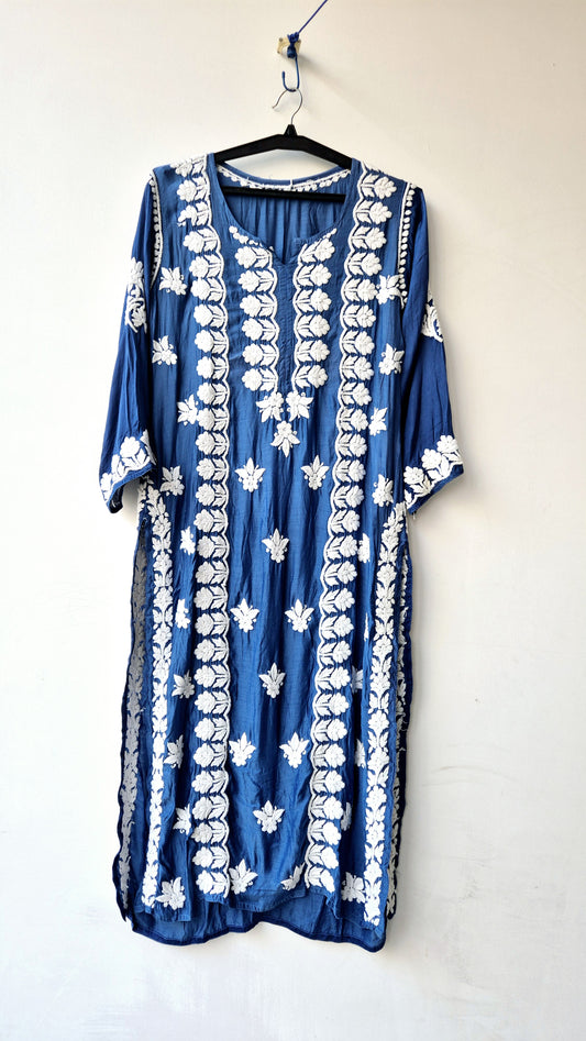 Cerulean Blue Premium Silk Chikankari Long Kurta