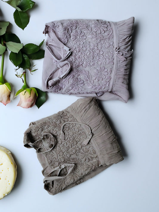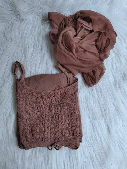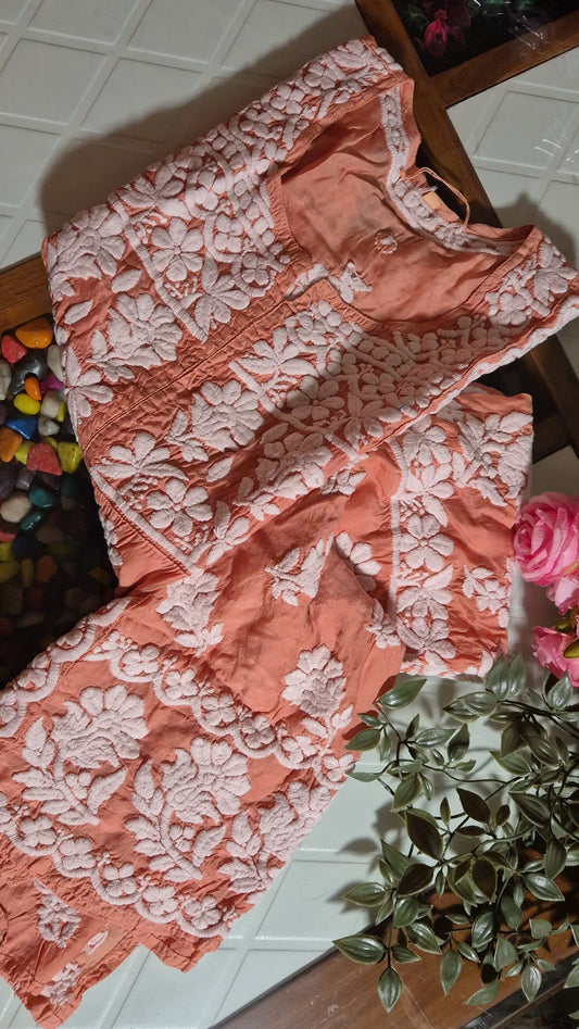 Chestnut Premium So soft Pure handmade Luxury Chikankari Long Kurta