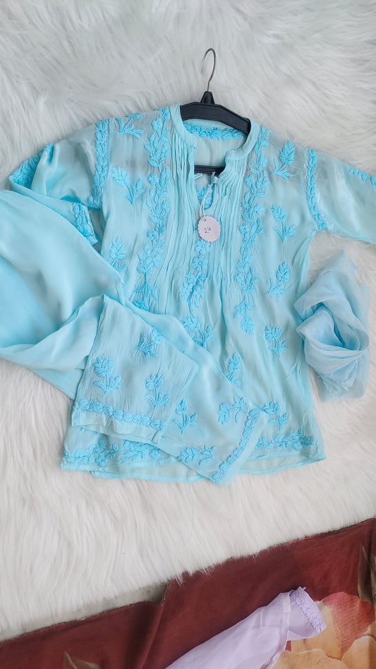 Pure Chikankari work What's in the Box: kurta Dupatta Bottom Silk Inner Length: 46" inches...