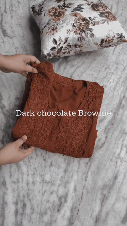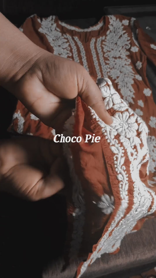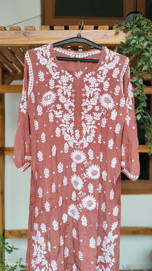 Chocolate Brownie Premium Silk Modal Chikankari Long Kurta