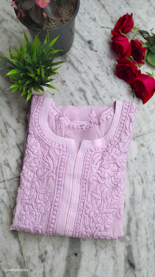 Classic Pink Premium Georgette Floral Chikankari Kurta