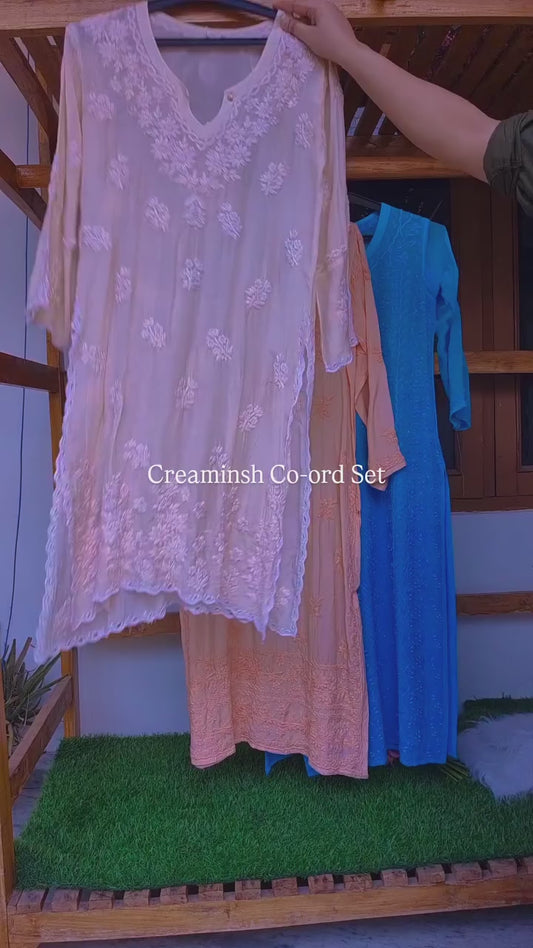 Creaminsh Premium Silk Chikankari Luxurious Look co-ord Set
