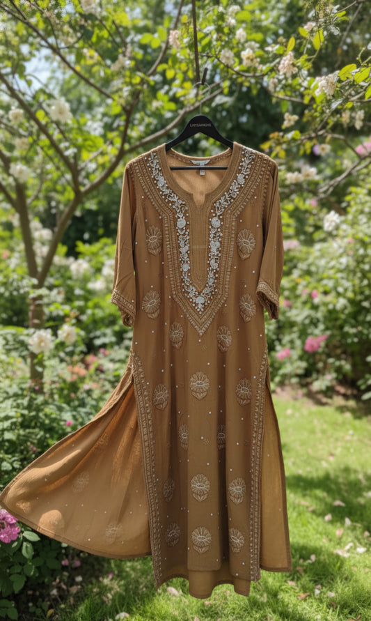 Dark Brown Beautiful Noori Premium Georgette Chikankari Kurta Cutdana Embroidery