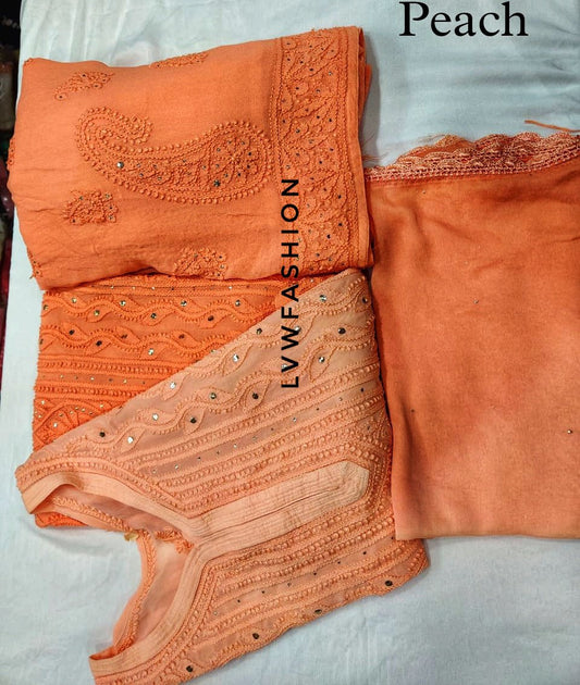 Fabric: PREMIUM GEORGETTE . Items - Kurta Duptta Bottom Inner ° Length Of Kurta: 46+...