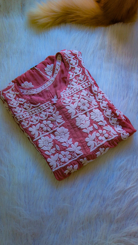 Experience the elegance and comfort with our Deep Red Plus Love Soft modal Chikankari Kurta...