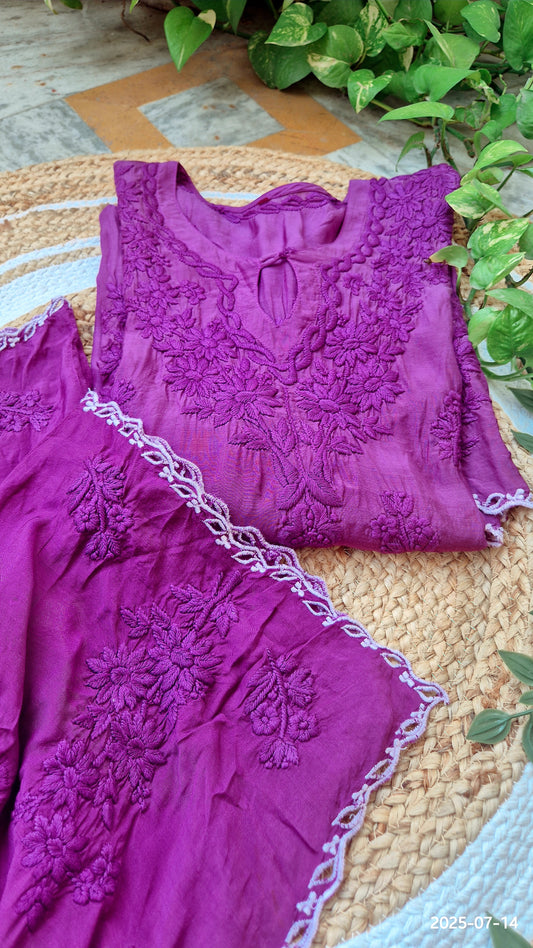 Deep Purple Premium Silk Chikankari Luxurious Look co-ord Set