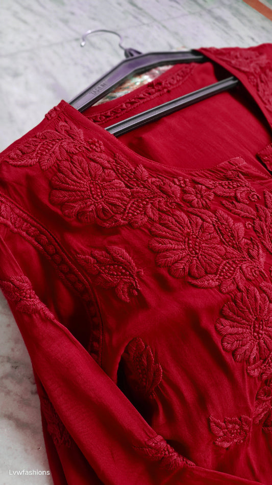 Deep Red Plus Love Soft Modal Chikankari Kurta