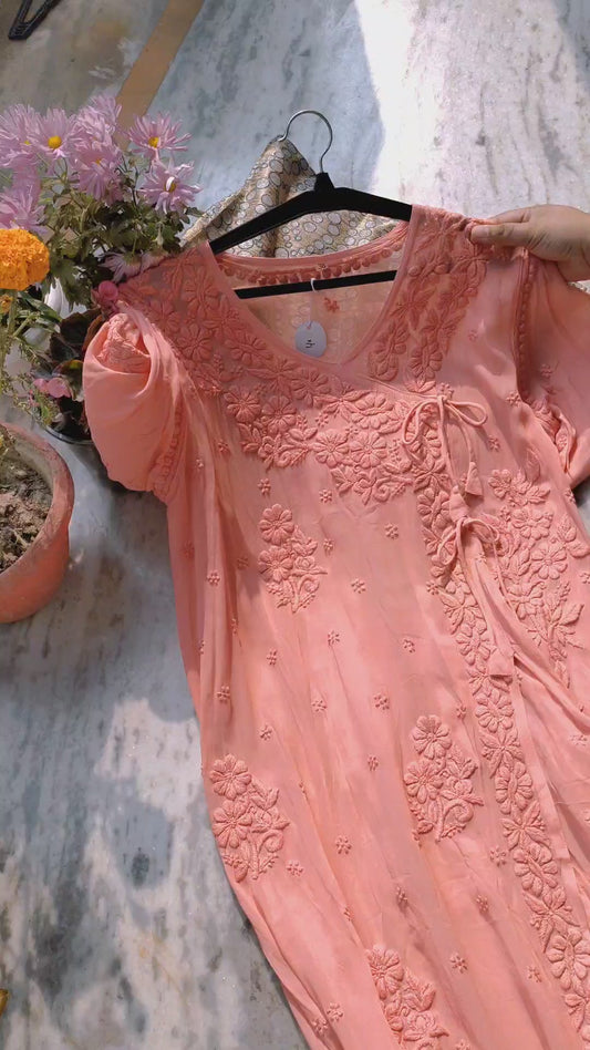 Pure Chikankari work What's in the Box: Chikankari Angrakha Dress FABRIC - Premium Georgette Length...