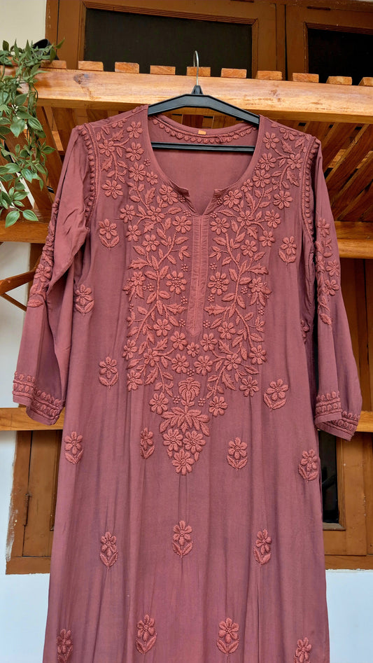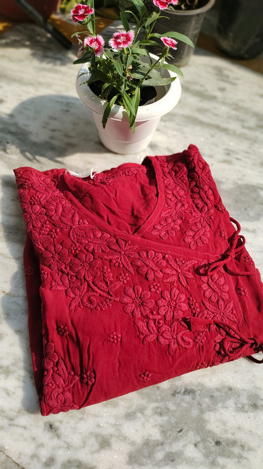 Deep ruby Premium Soft modal Cotton Chikankari kurti