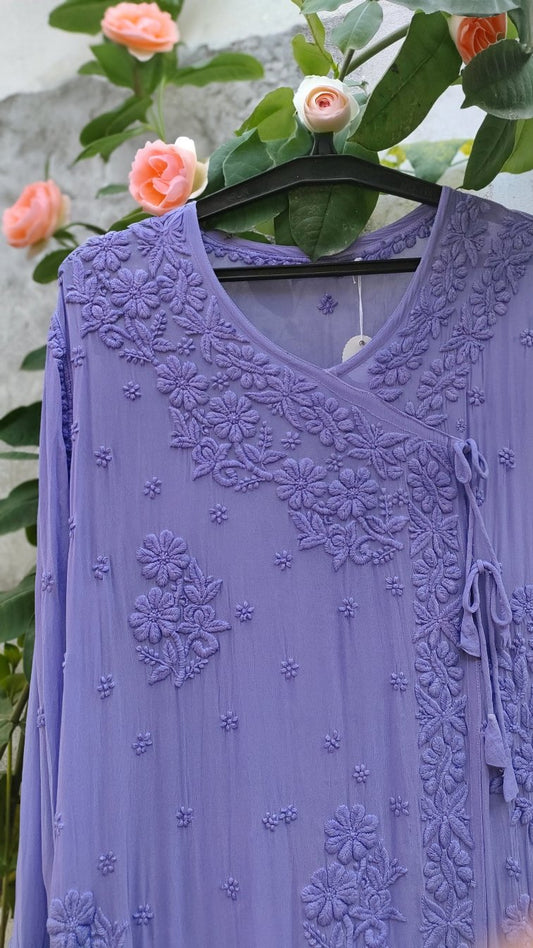 Duaa Lavender Love Luxurious Look Chikankari Angrakha