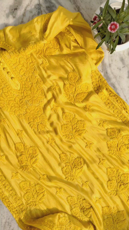Dove Premium Resham Silk Chikankari Kurta Super Shining
