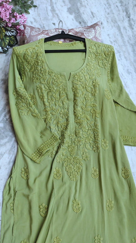 Eid Edit Soft Green Premium Modal Cotton Chikankari Long Kurti