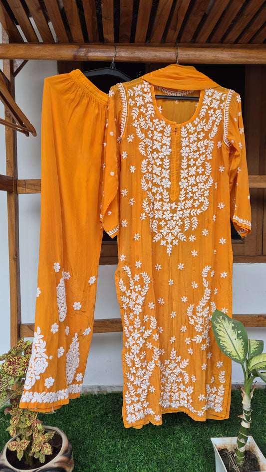 Pure Chikankari work What's in the Box: kurta Silk Inner Dupatta Premium Georgette Length: 46"...