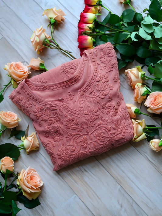 Elham Peach Premium Soft Georgette Chikankari Tunic