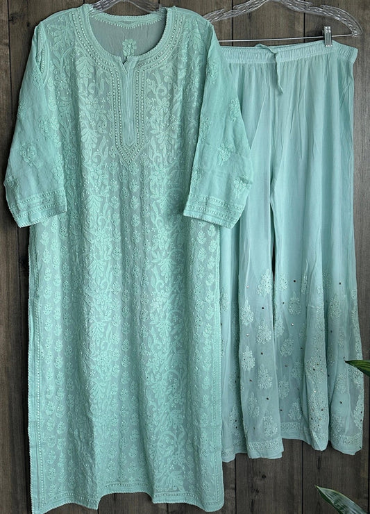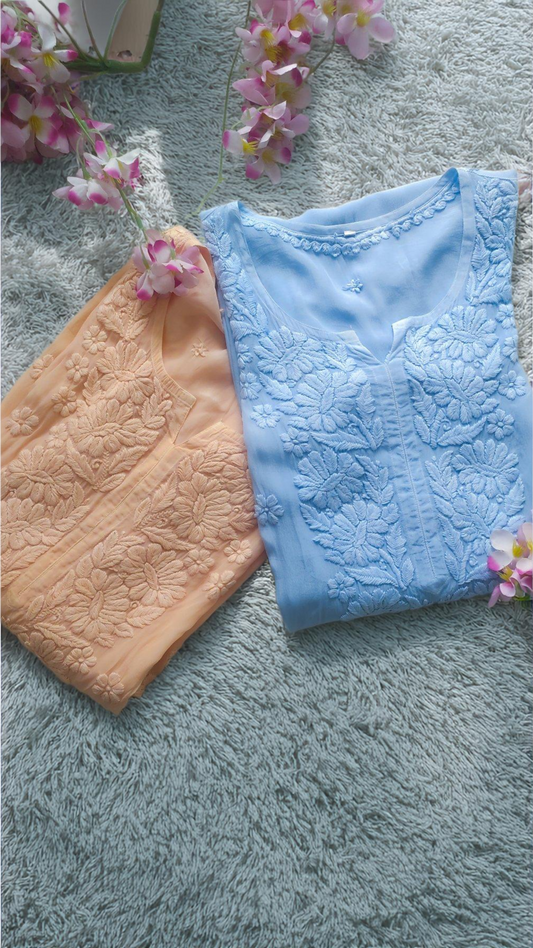Falak Premium Georgette Chikankari And Mukaish Pure Handcrafted Kurta