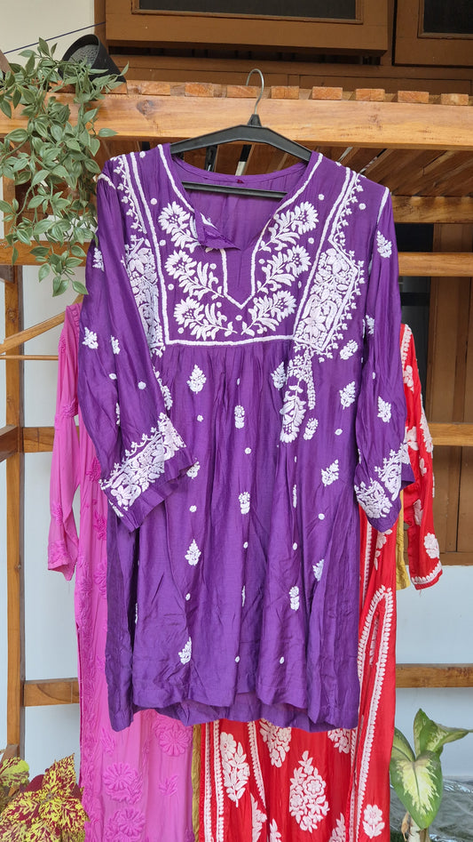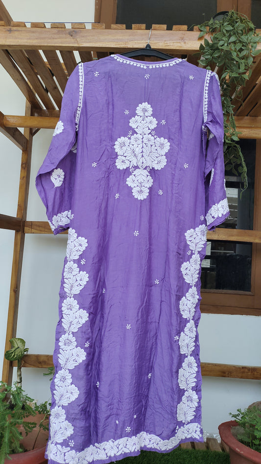 Farah Deep purple Premium Silk Luxurious Look Chikankari Long Kurta (Unique Back Embroidery)