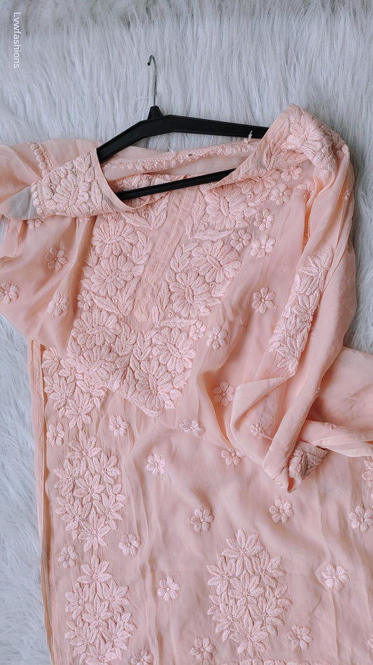 Falak Peach Premium Silk Luxurious Chikankari Long Kurta