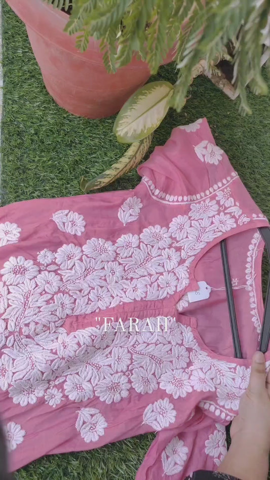 Farah Pinkish Premium Silk Luxurious Chikankari Kurta (Unique Back Embroidery)
