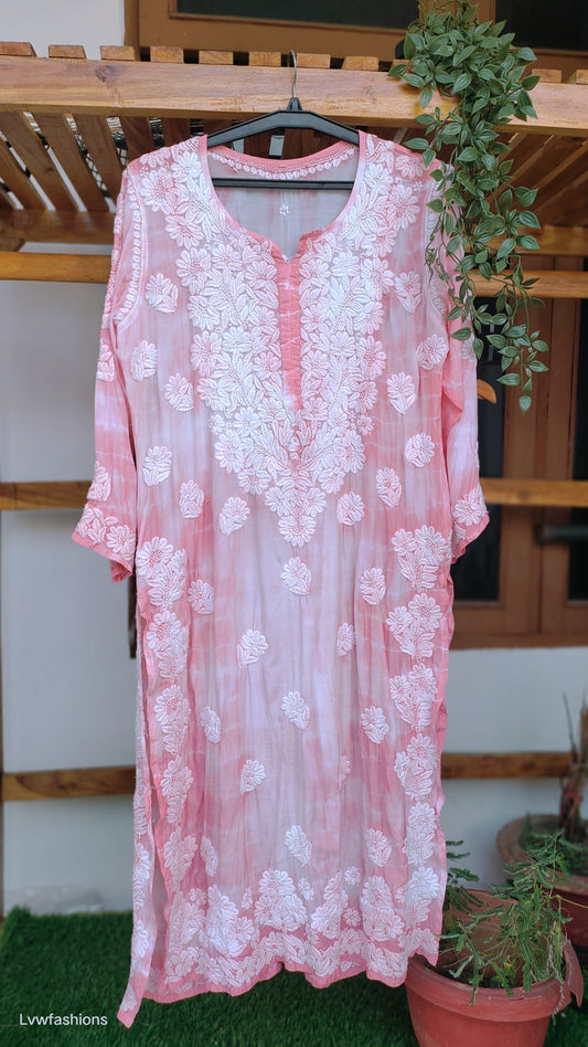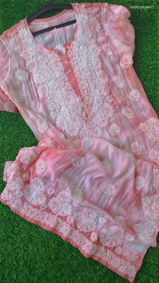 Farah Peach Tye Dye Luxurious Look soft Silk Chikankari Kurta
