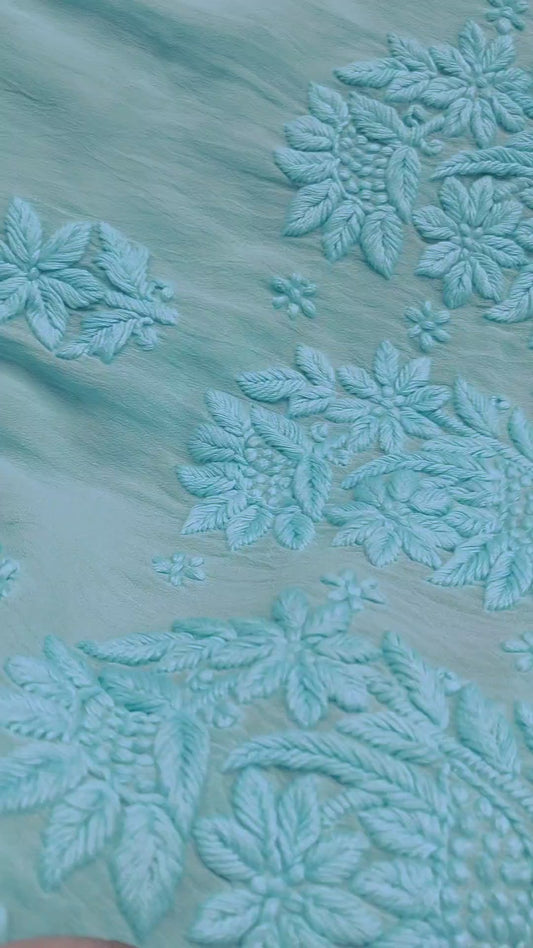 Feriha Green Premium Georgette Long Kurta Chikankari & Kamdani