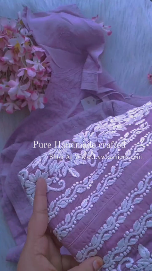Feriha Lavender Premium Silk Chikankari Long Kurta