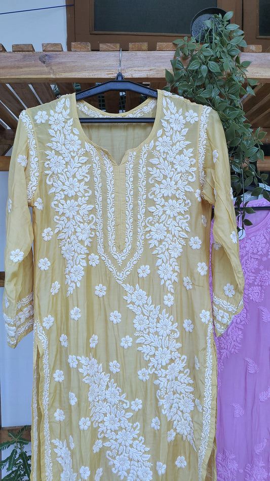 Feriha Flower Yellow Premium Silk Luxurious Look Chikankari Kurta