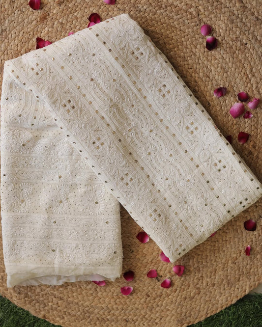 Fariha Super Luxurious Premium Georgette Chikankari Kamdani Kurta Dupatta Set Unstitched (Dyeable)